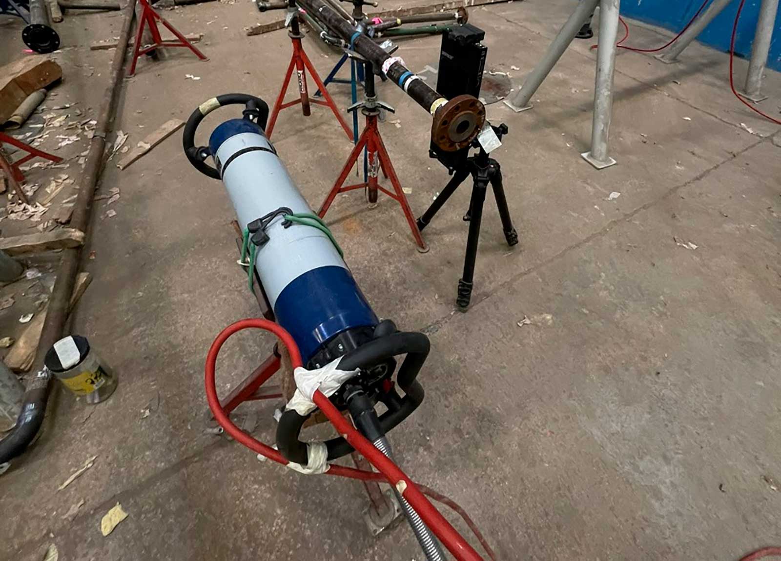 At the beginning of 2024, we had an interesting project to upgrade and optimize the radiography testing process in a huge pipe mill in Abu Dhabi (UAE). We used the SCANRAY 1230 complex with a non-magnetic mechanical system to fix the digital detector on the control object and the constant-potential X-ray generator with anode voltage up to 225 kV. The inspected pipes were from 2 to 24 inches with a wall thickness ranging from 4 to 32 mm.